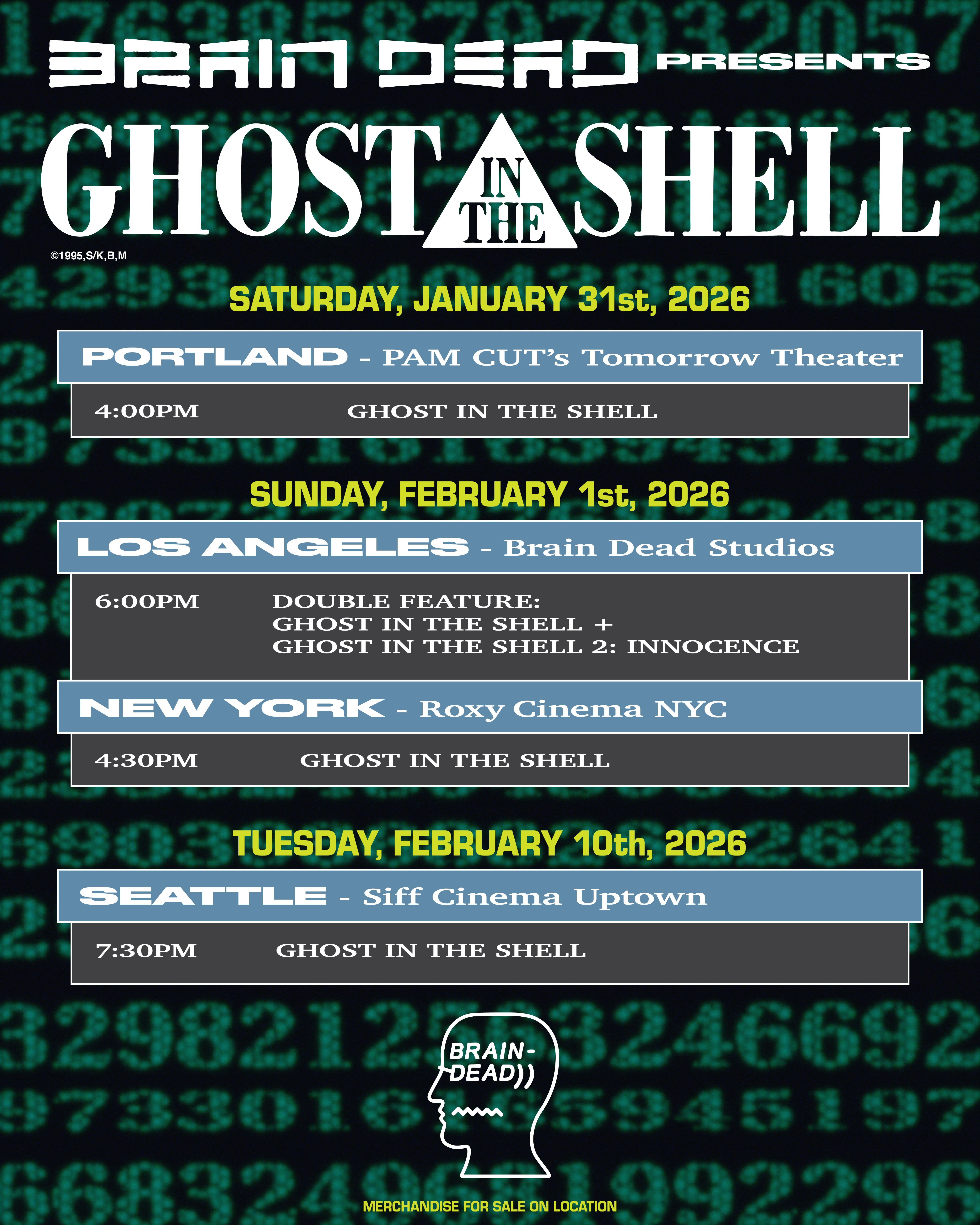 Los Angeles — Brain Dead Studios — 02/01 (free double feature with Ghost in the Shell 2: Innocence)