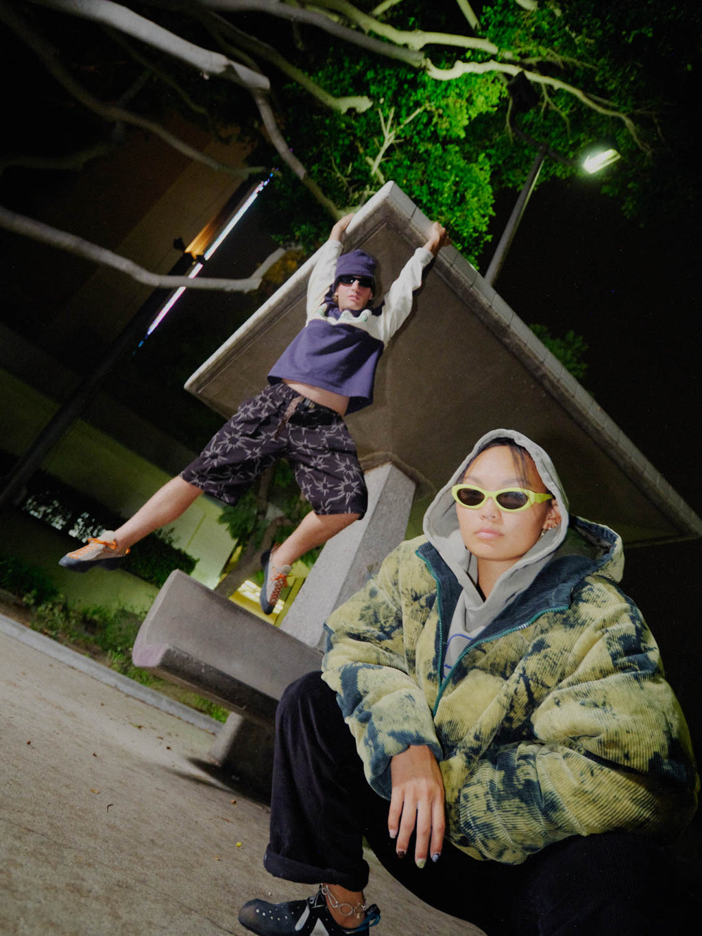 This drop introduces outerwear like the Bleach Dyed Dimension Puffer Jacket, layering bleach-washed corduroy with down fill and box quilting for oversized structure, and the Equipment Pullover Jacket, a fleece-and-ripstop hybrid with contrast paneling and utility details. Pants adapt to the wearer with the Convertible Razor Climbing Pant, shifting from full length to short, while the Cord Climber Pant grounds the line with a relaxed corduroy cut.