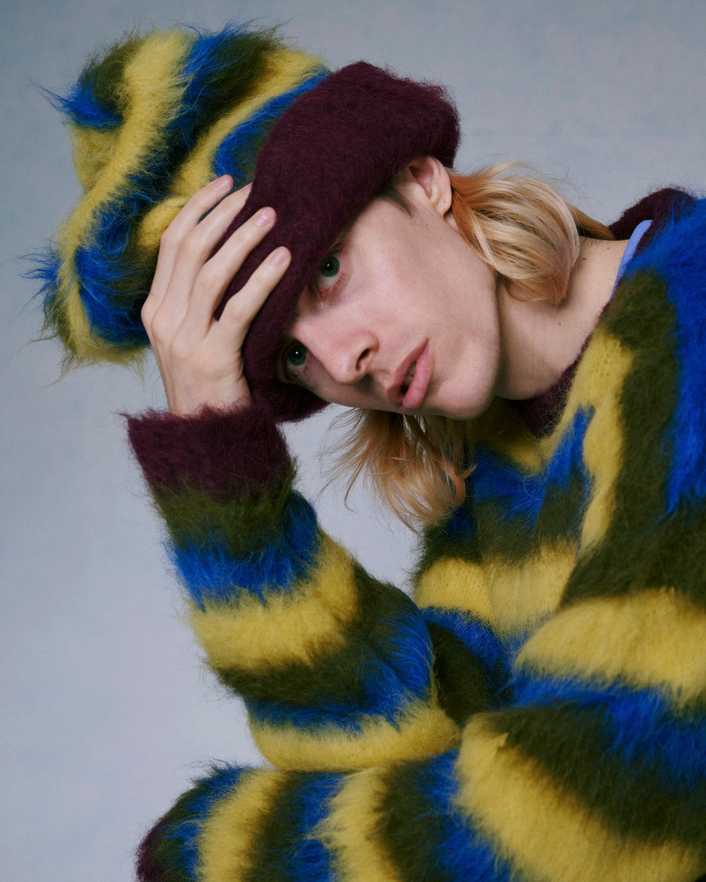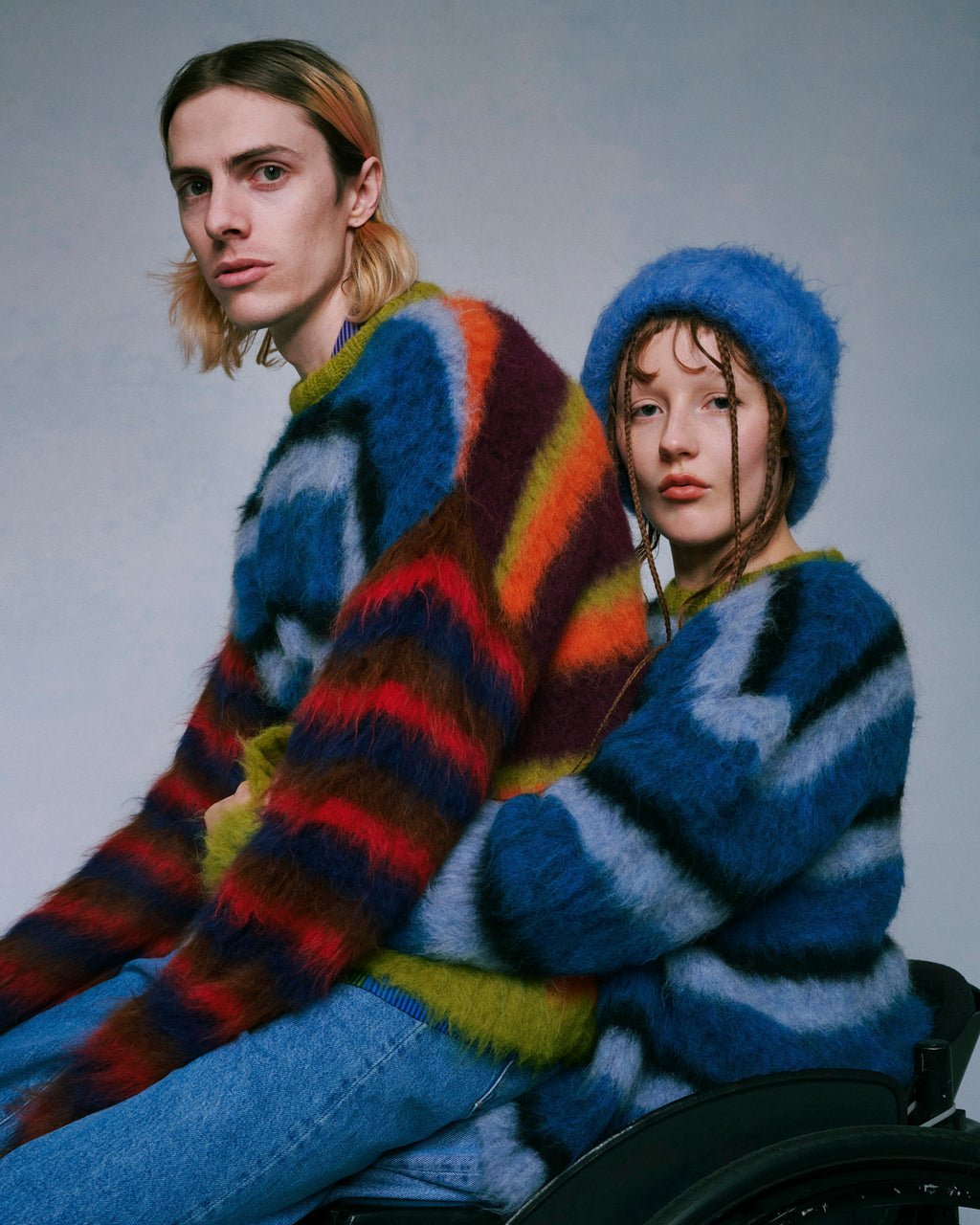 Our 2023 collection spans from our buttoned up multi-colored Alpaca cardigan, silky pullover Alpaca crew necks, to our ethereal soft blended fingerless gloves, and striped chunky boxy knit sweaters. In between the bold and blurred color combinations, every marled multi-tone sweater and beanie uses hand twisted multiple-ply yarn for dynamic moving color.