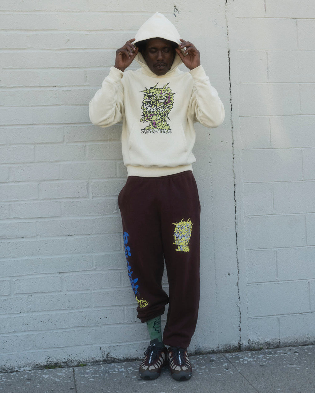 Our classic heavyweight cotton sweatpant. Scrambled logohead graphics printed on both legs.